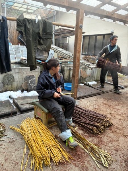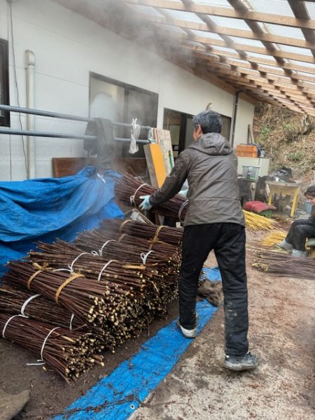 新年あけましておめでとうございます。 昨年12月20日より、恒例の楮蒸しをはじめ新年1月6日 ようやく一年分の原料の皮剝ぎを終えました。 八日間にわたる作業で皮剝ぎをしてくださった方は総勢30名! こんなにたくさんの方たちに力を貸していただいて、無事に今年の原料づくりが整いました。 皆さま今年もどうぞよろしくお願いいたします。